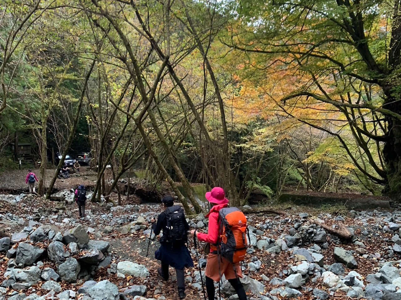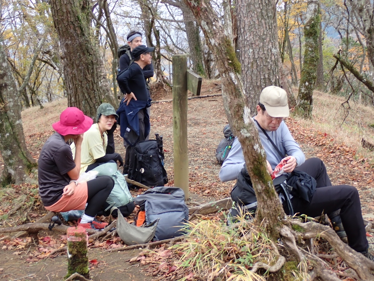 今月は、紅葉の時期で、気温も低いので、紅葉が楽しめて、ロングトレイルをやりたいということで、寄~鍋割山~大倉のコースにしました。