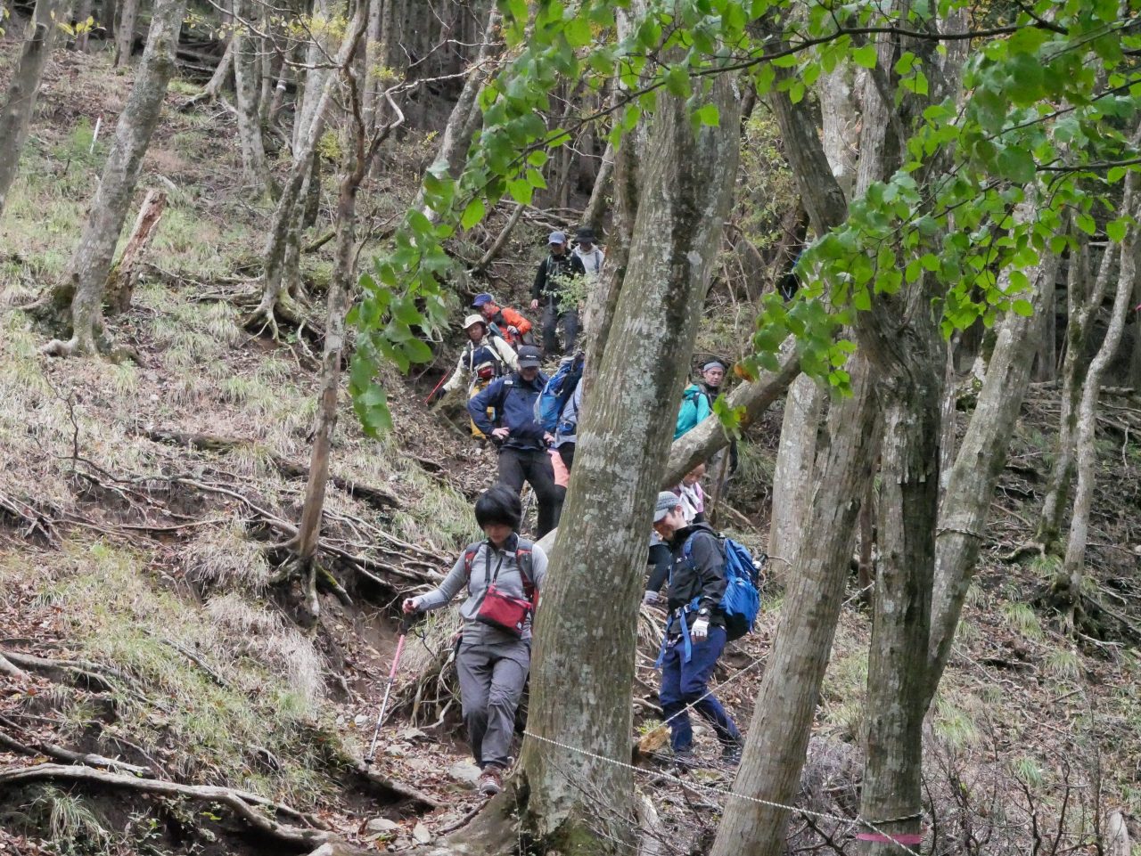 ここを過ぎると、せっかく登ったのに、一気に下り。慎重に下りて行きます。