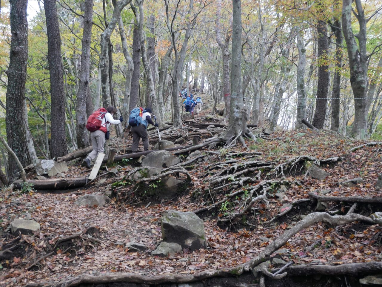 登山道の周りは、紅葉がきれいですが、ゆっくり見る余裕もなく、エッサエッサと登ります。