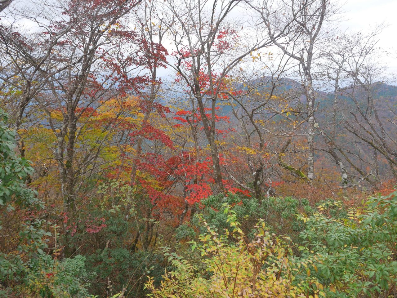 標高800m付近のこの辺りには、赤や黄色などの紅葉がきれい![]()