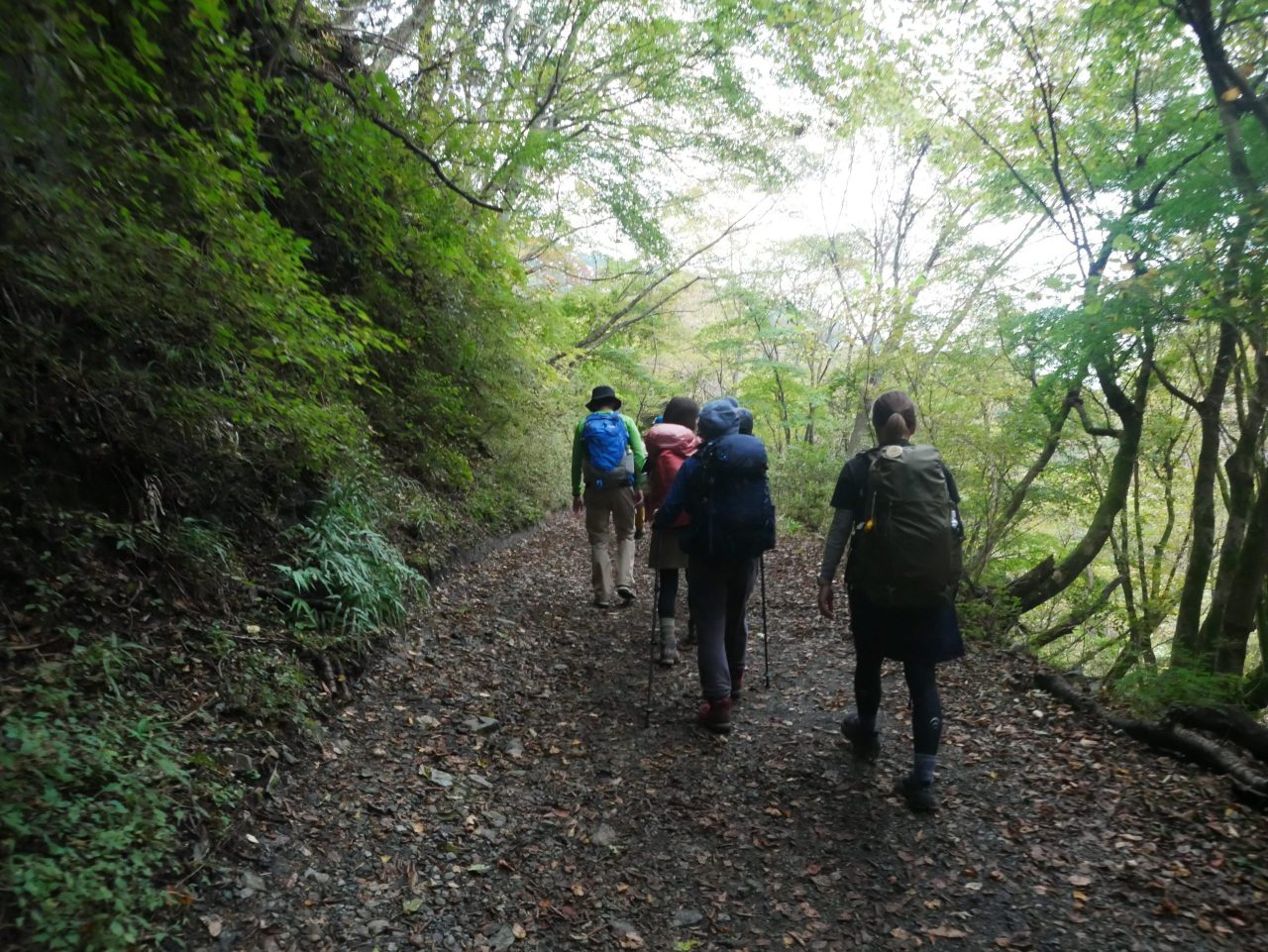 林道が長くつまらないので、童心に戻って、しりとりをしながら、歩きます。