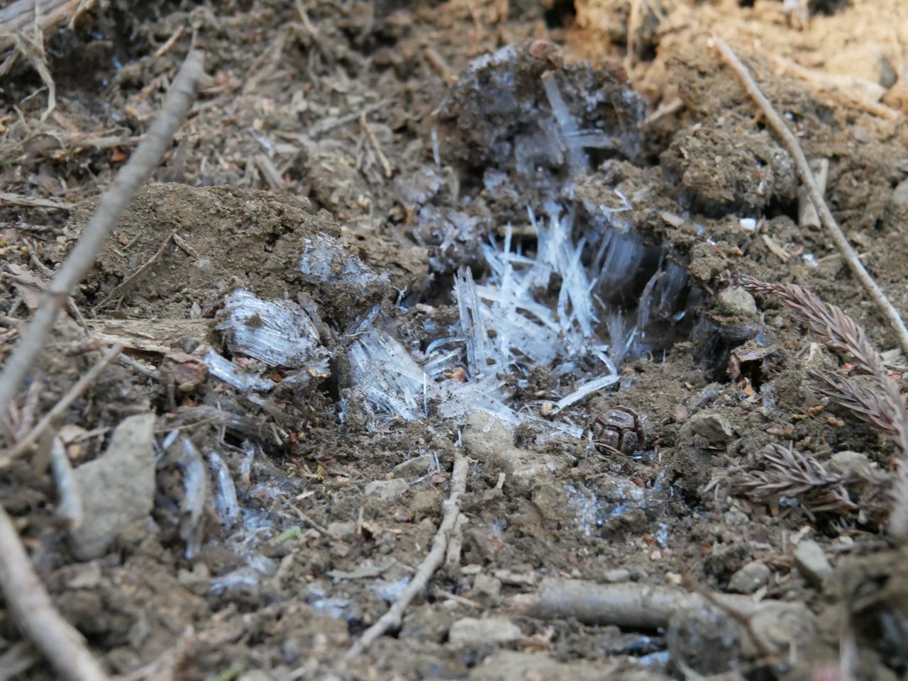 天気はいいのですが、空気が冷たくて、寒い あちこちに霜柱![]()