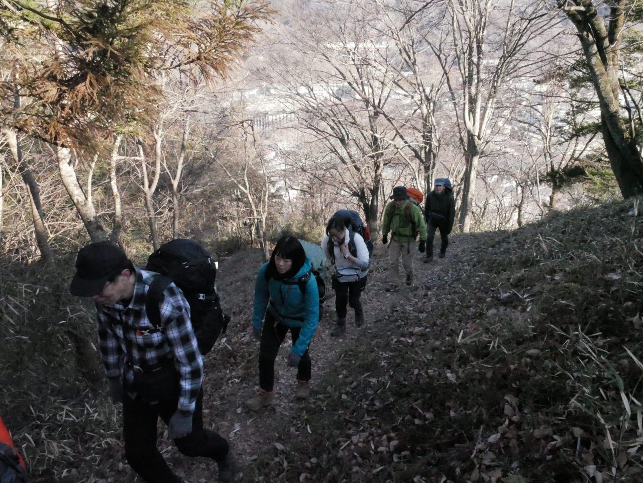 今回の参加人数は9名と少なめ。今日は、大月駅に集合して、むすび山~高川山~初狩駅に下山するルート。