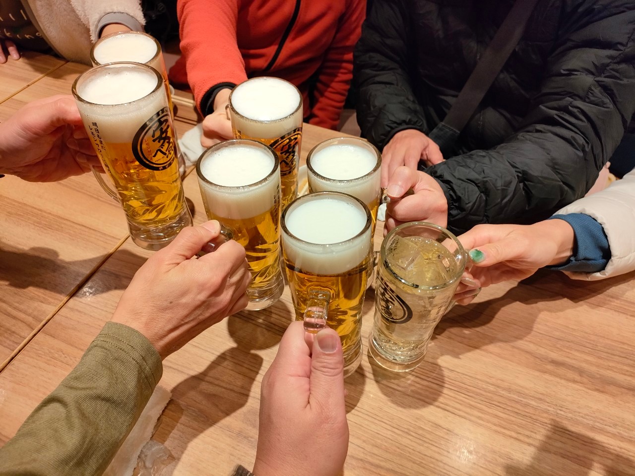 ここで、少し休憩して、雪を纏った富士山に向かって歩いていきます![]()