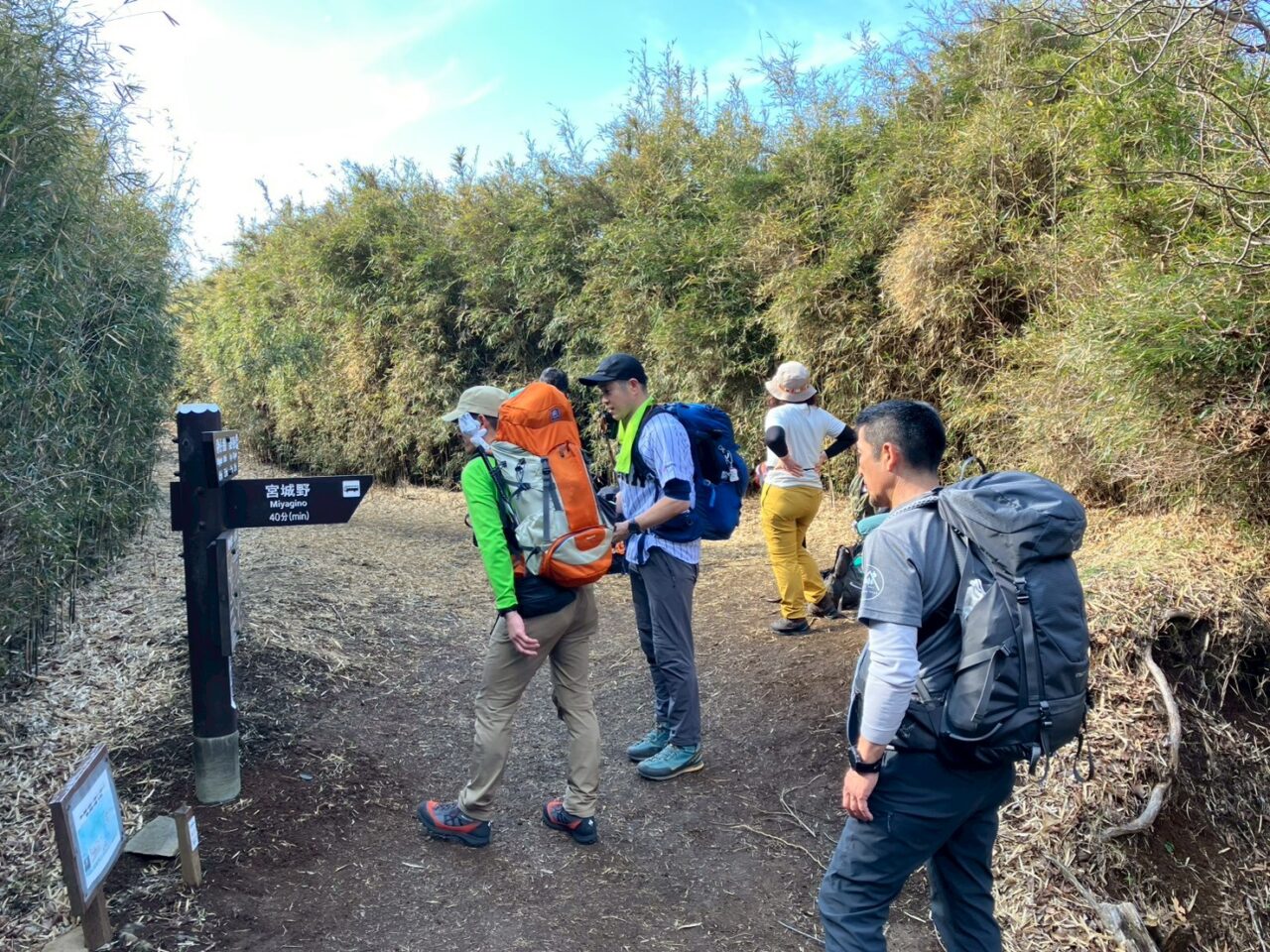 小田原駅集合で、そこから、仙石原行のバスに乗って、宮城野支所のバス停でおります。ここから、しばらく、舗装路を歩いて、別荘地の裏側の山道を登って行きます。
