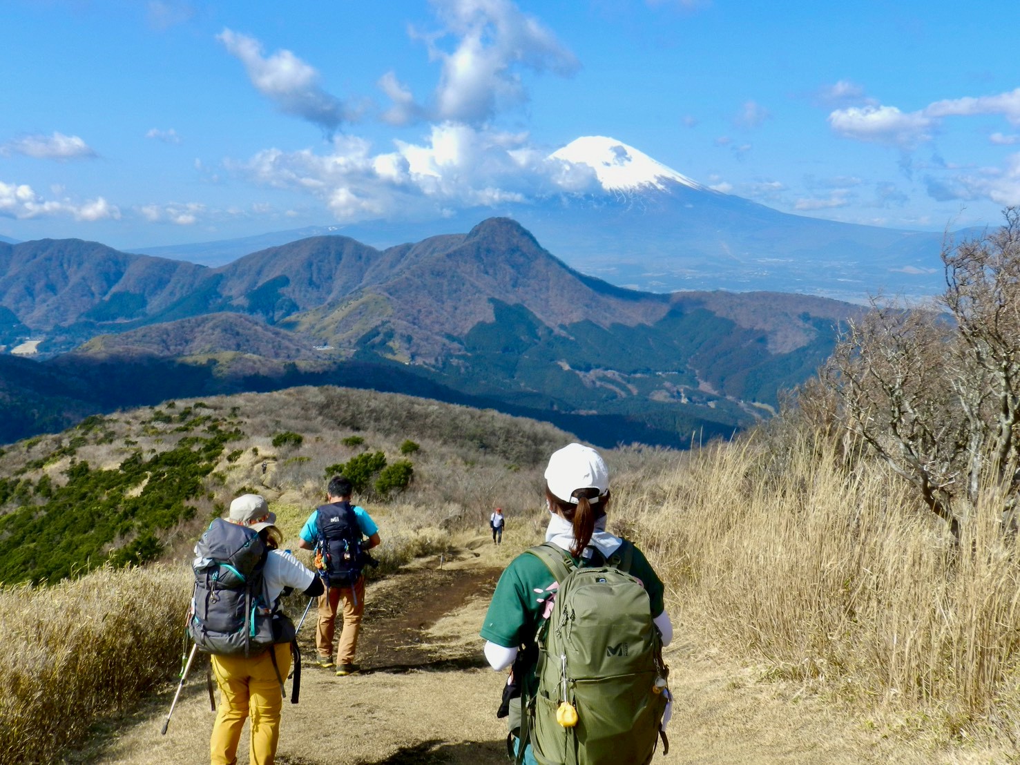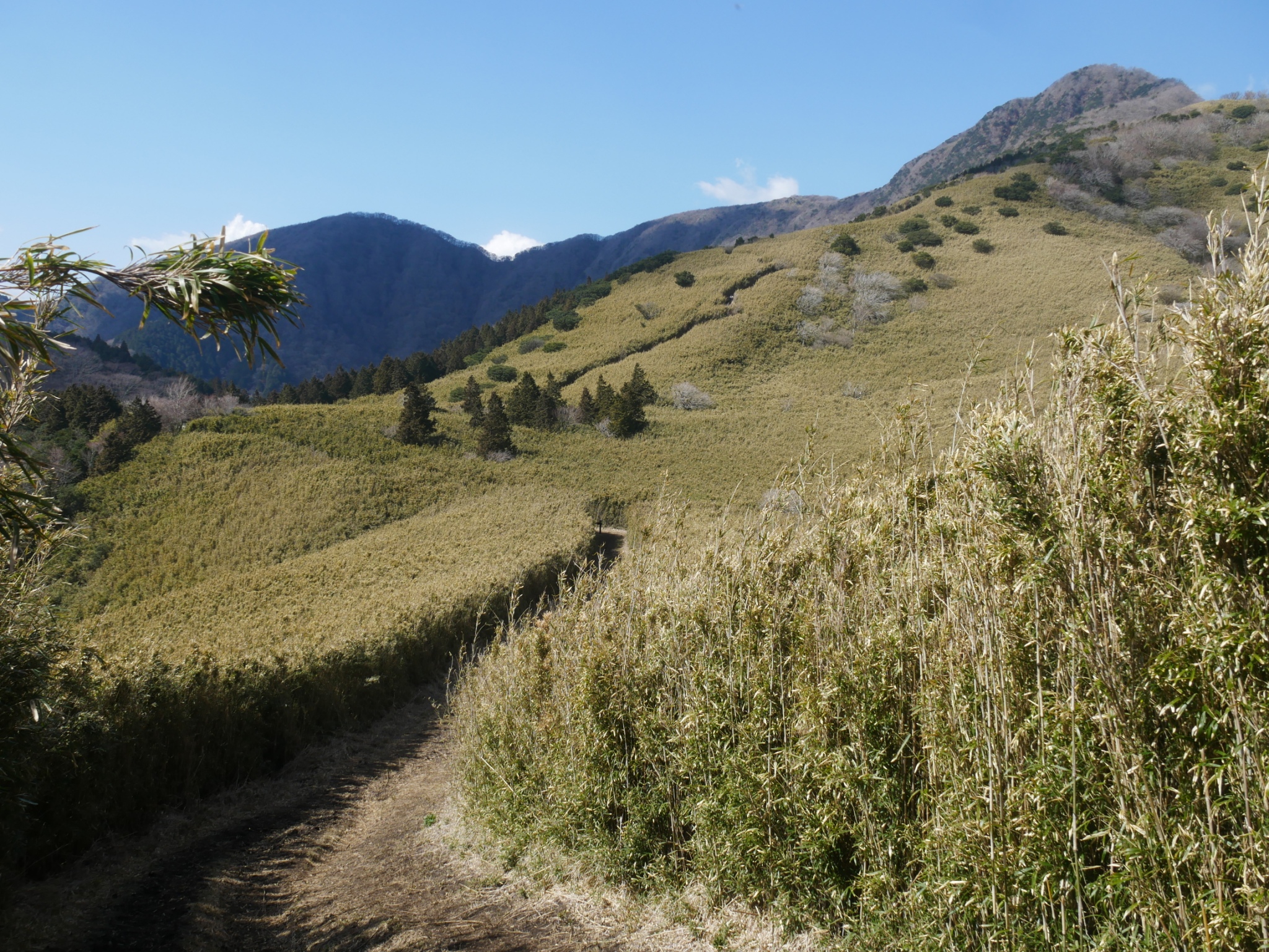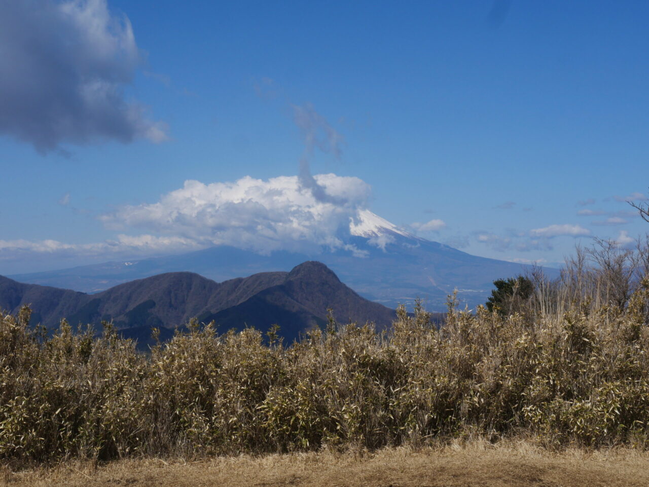 笹林を抜けると、視界が広がり、金時山の後ろに富士山。金時山はまだまだ遠いなあ。